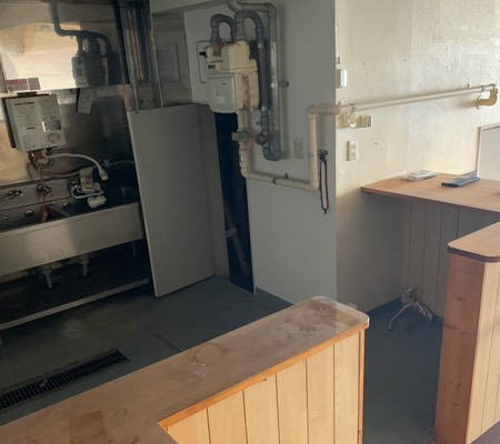 前回が飲食店であった部屋を新しく学習塾にするということで、一度全てを解体撤去し、何もないスケルトンの状態にします。キッチン、カウンターや飛び出ている配管系統も撤去します。